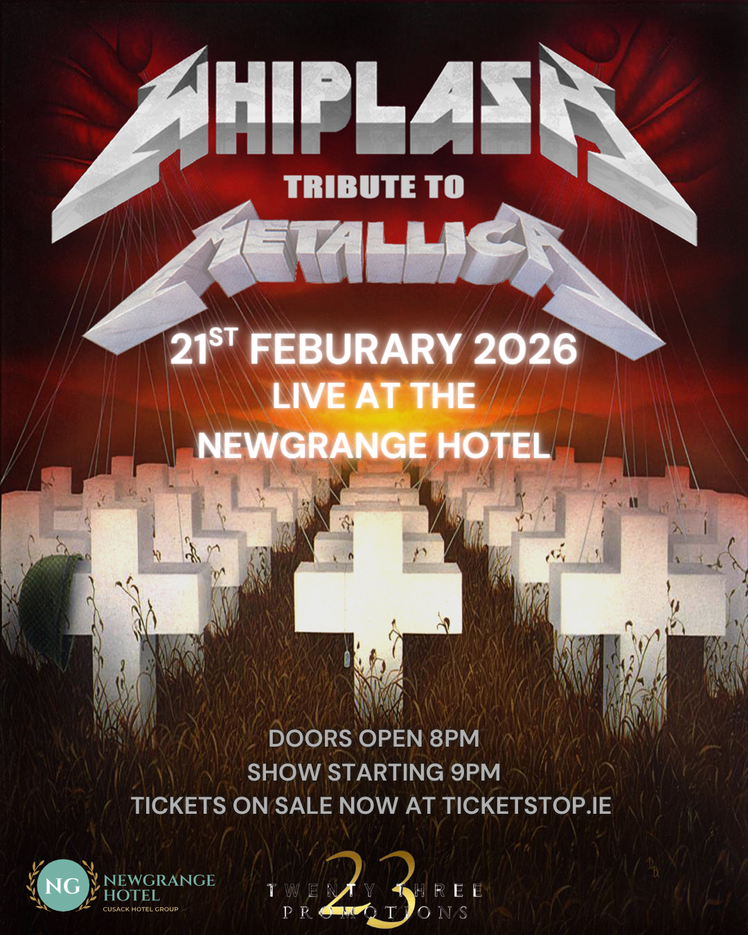 Get ready for an electrifying night as Whiplash – Tribute to Metallica takes over the Newgrange Hotel!